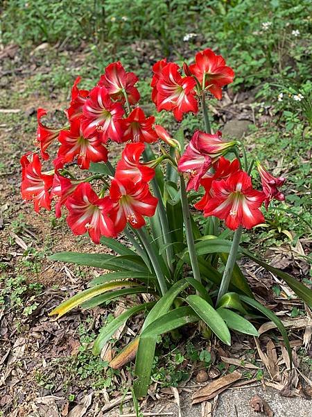今天走在路上沿途享用的是春天的綠,總也有些紅花配色!孤挺花+一地的木棉花+一隻可愛的小東西!