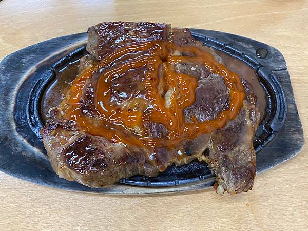 今晚陪老爺享用平價牛排超大款,18盎司大牛排,看來鐵板不夠大,分二道上桌! 餐後還有自助冰淇淋、紅茶!